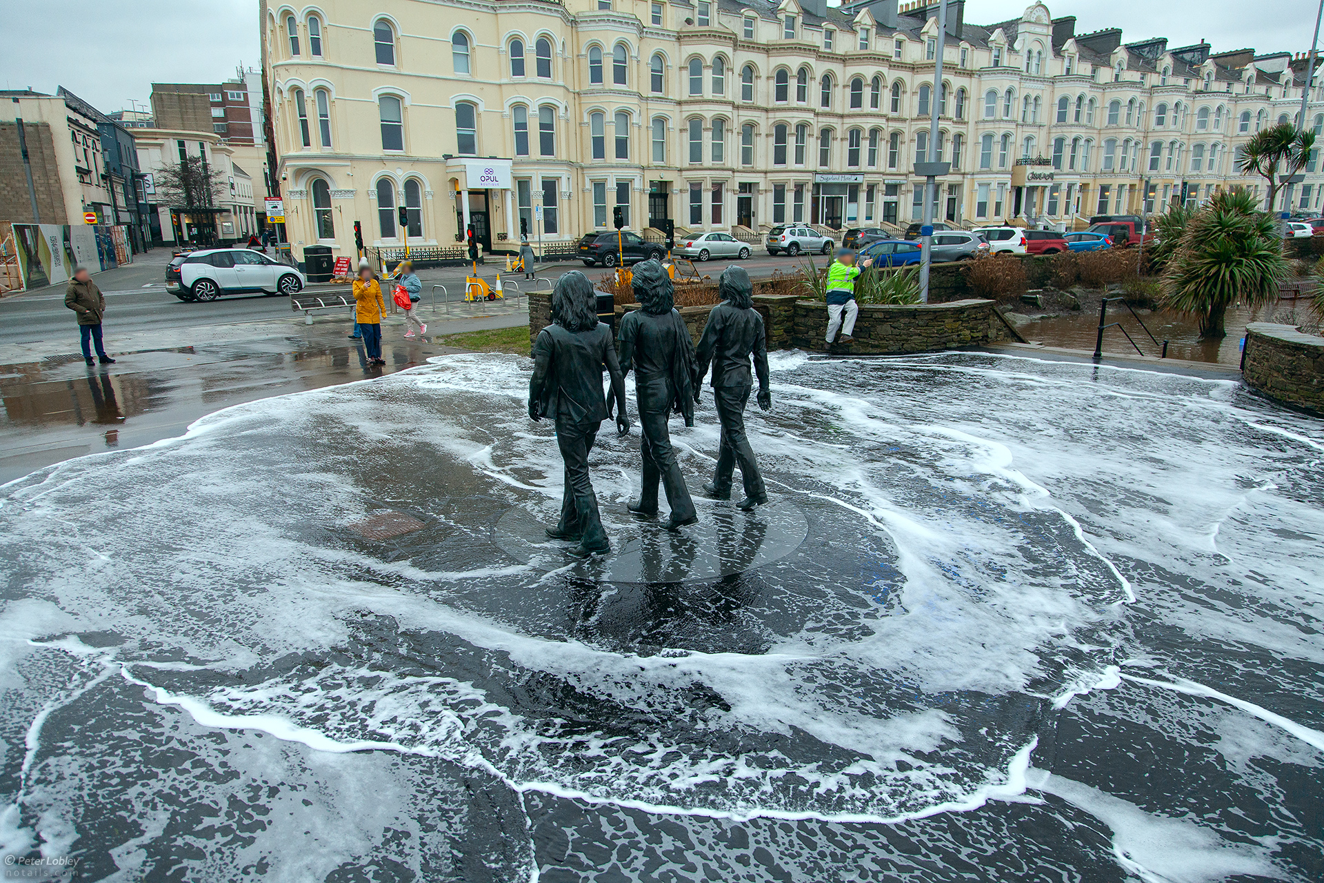 Bad weather at the beaches and on the promenade of Douglas, Isle Of Man. Our Bee Gees are getting wet feet! Watch more photos at: